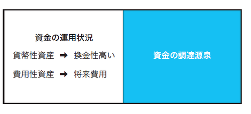貸借対照表の右側は資金の調達源泉、左側は資金の運用状況を示します。