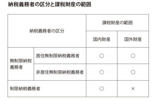 居住無制限納税義務者と非居住無制限納税義務者については、相続または贈与により取得した財産が日本国内にあると海外にあるとを問わず、その相続財産及び贈与財産の全てに対して課税されます。