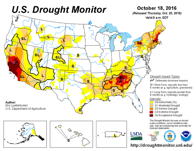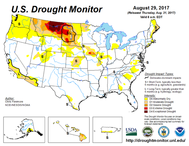 [図表2]全米の干ばつの状況(2017年8月29日現在)