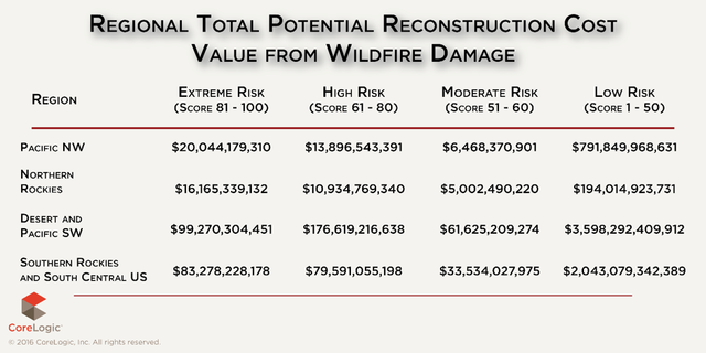 [図表4]山火事による潜在的な地域別被害金額(再建築コストベース)