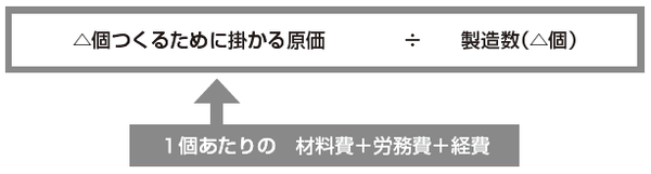 種類ごとに一定量の商品を作る場合の原価を計算し、これを製造数で割って商品1個あたりの原価を算出します。まず製造に掛かる材料費、製造を行っている労務費(従業員の人件費+外注費)、及び製造に掛かるその他の経費を算出します。