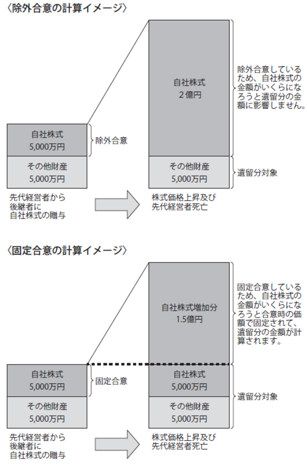 そこで、将来の紛争防止のために、経営承継円滑化法に基づく遺留分に関する民法の特例として、除外合意と固定合意などが設けられています。