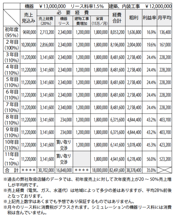 コインランドリー経営を始めるに際し、どれくらいの売上げが期待できるかを予測するだけでなく、リースやローンの審査の際に金融機関から求められるので、必ず作成しなければなりません。現状として、ほとんどの機械販売会社や機械メーカー、フランチャイザーがオーナーに代わって作成してくれます。