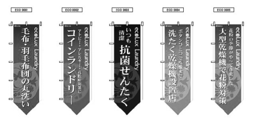 のぼりと聞くと、古風なイメージを持つ人が多いかもしれません。たしかに古典的な集客方法ではありますが、現代においても「にぎやかし効果」は絶大です。比較的低予算で実行できるという魅力もあります。ただし、昔ながらの「大売出し」といったデザインはNGです。のぼり設置の目的は、「ここにコインランドリーがあること」と「若い女性でも入りやすいハイセンスなお店であること」を広く認知してもらうことにあります。色づかいやフォントにこだわったのぼりを利用しなければなりません。
