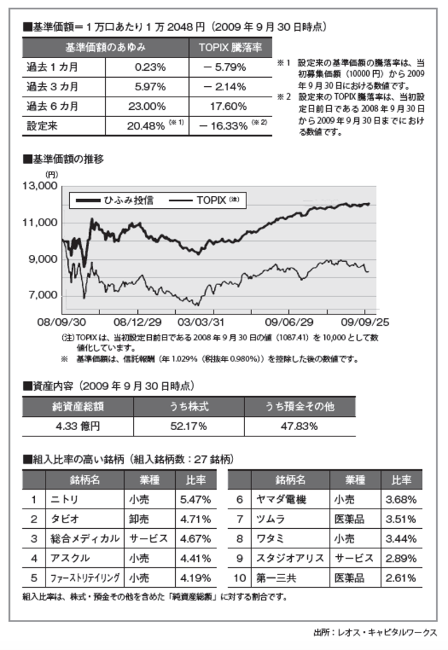 なぜ、このようなパフォーマンスをあげることができたのでしょうか。その理由は、2009年9月30日時点の月次運用レポートを読むと見えてきます。