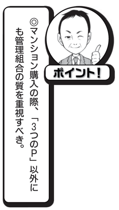 ここでも、ポイントは「3つのP」や建物の設備などではなく管理組合にあります。まずは「長期修繕計画が破綻していないこと」が大切です。