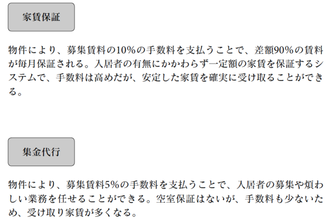 さらに、管理会社のサービスを利用すれば、空室リスクをゼロにすることも可能です。オーナー向けとしては、2つの代行サービスが主流となっています。