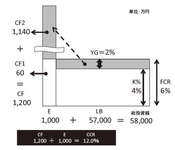 【公式】キャップレート÷(1+購入経費率)=FCR
