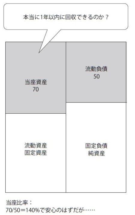 簡単に言えば、返済しなければならないお金よりも、すぐに換金できるであろう資産のほうが多ければ安心で、少なければ注意しなければならないということです。