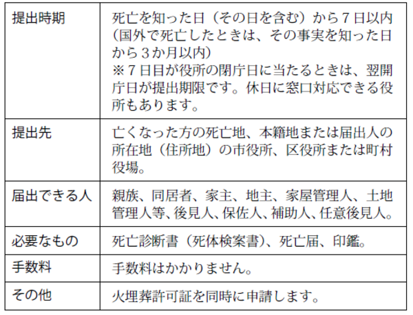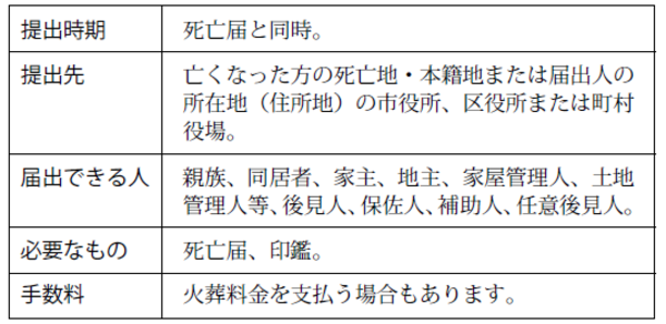 「死亡届・火埋葬許可書」は同時に該当の市町村へ提出