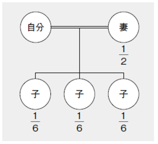 子どもが3人いる場合は6分の1ずつ(2分の1を3等分)、4人いる場合は8分の1ずつ(2分の1を4等分)になります。逆にいえば、子どもが何人いても、妻・夫の相続分は2分の1なのです。