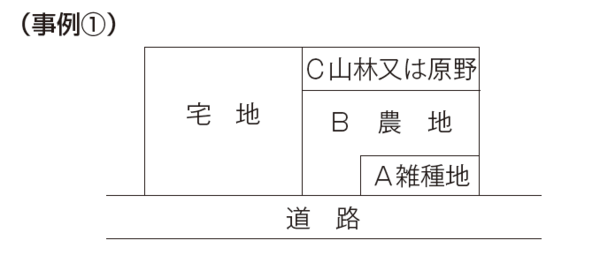 (注) 例えば、上記の質疑応答事例の(事例①)が、次のような立地条件であれば、A、B及びCの各土地は、それぞれを1画地として評価することになります。