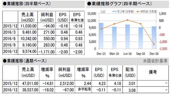 全体の営業損失は1億7500万→12億6200万ドルに拡大。総営業費用を3.29%削減したものの、減収分をカバーできていない。ただ、再編費用などを考慮した場合、調整後の希薄化後EPS(非GAAP)は0.83ドルとなり、市場予想(0.66ドル)を上回る。会社側は17年の売上高を375億ドル前後、希薄化後EPSを2.30ドル前後、調整後の希薄化後EPS(非GAAP)を2.90ドル前後と予想した。