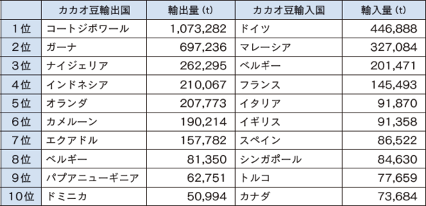 ここで重要なのは、ヨーロッパには、カカオ豆の輸出でも輸入でも上位に名を連ねる国があるという点です。