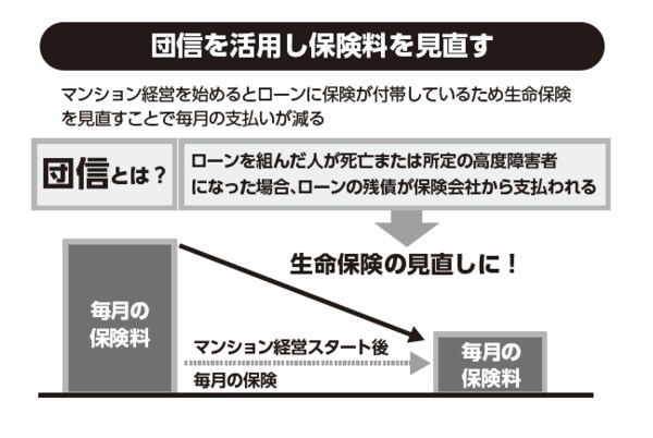 マンション経営を始めたいけれども、今は家計に余裕がないからできないという人も多いのではないでしょうか。そういう人には、マンション経営のメリットの1つである団体信用生命保険を活用し、保険料の支払いをスリム化することをお勧めします。マンション経営を始めるとローンに付帯している団体信用生命保険が生命保険の代わりになり、保険料の支払いの見直しをすることで、毎月の支払いを減らすことが可能です。