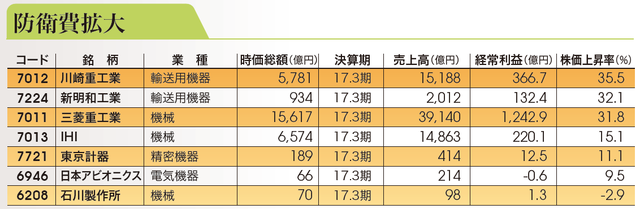 拡大する防衛費・・・輸送用機器メーカー等に注目