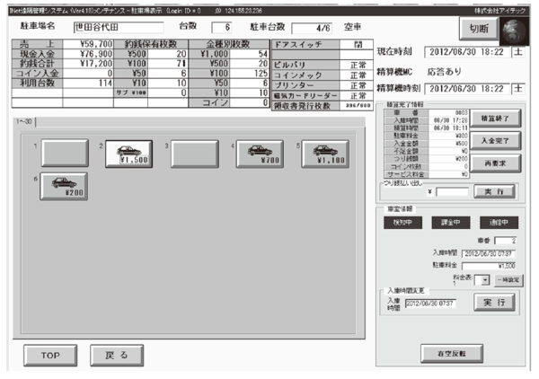 アイテックのデータセンターと各駐車場のネットワーク対応精算機はインターネット回線でつながれており、運営会社は駐車場ごとの月々の売上データやクレジット決済利用金額、ポイント発行額などの情報を、専用ウェブサイトでいつでも照会・検索できるようになっている。