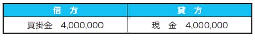 買掛金の支払いで、買掛金という負債が減少していますので左側に、一方、資産である現金が減少していますので右側にそれぞれ書き入れます。