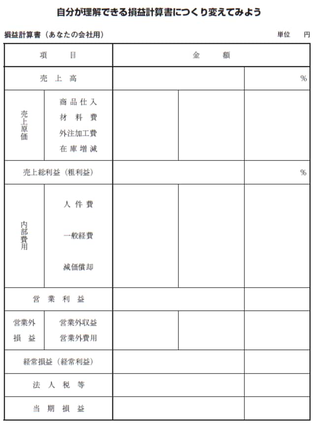 表5の表で、あなたの会社の損益計算書をつくりなおしてみましょう。