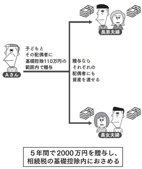 Aさんは68歳とまだ年も若く、自身の相続までには少し時間的な余裕がありそうな年齢です。そんな人には、贈与税の基礎控除内での贈与がぴったりです。