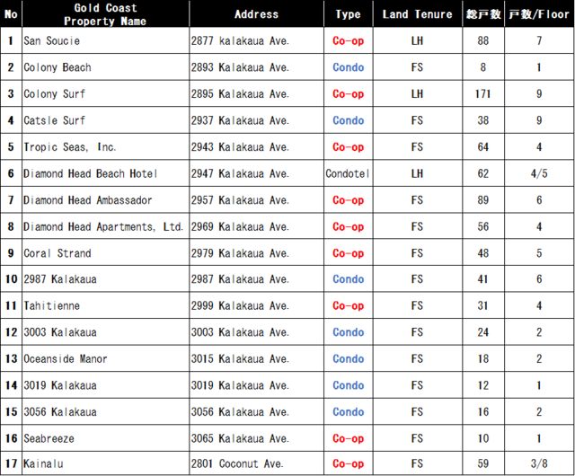 Gold Coastにも一般の不動産同様に完全所有権として所有可能な部屋もありますので、いわゆるワイキキのど真ん中とはまた違う、ハワイ本来の自然を感じて過ごしたいという方は、このGold Coastエリアにもご注目いただければと思います。