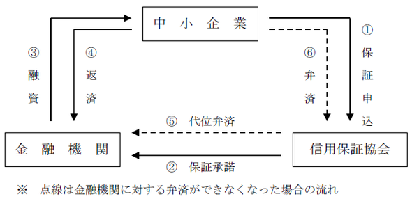 また、融資を受けた方が金融機関への弁済ができなくなったときは、金融機関は信用保証協会に対して未払いの債務を肩代わりして返済するよう求めます。