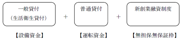 「一般貸付(生活衛生貸付)」+「新創業融資制度」⇒1,500万円まで無担保無保証