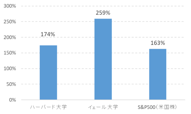 [図表2]過去10年間のエンダウメントの累積運用実績:ハーバード大学/イェール大学