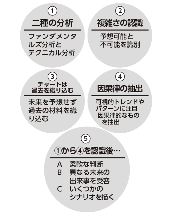 未来を不確実と見て、トレーダーがかかわる予想環境の複雑さを認識した上で、予想可能と予想不可能を識別する。