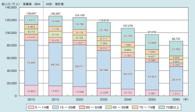 [図表1]年齢区分別将来人口推計