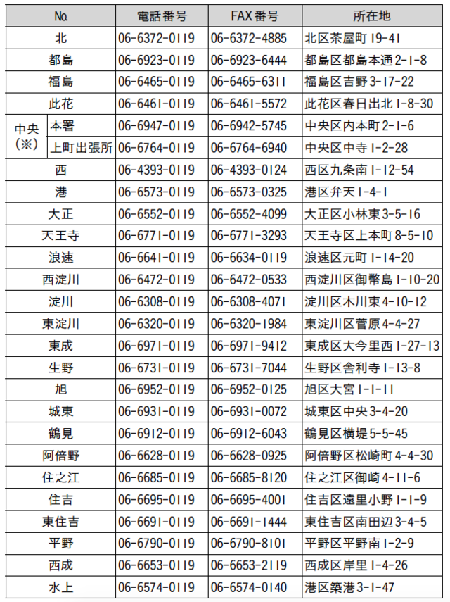 [図表2]大阪市消防署一覧
