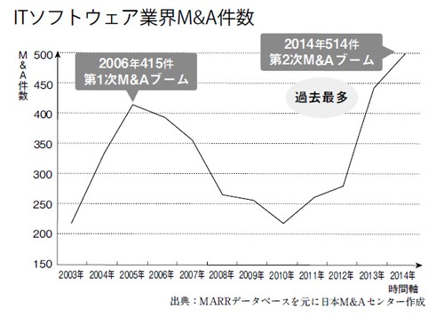 「IT・ソフトウェア業界」は14年に過去最多のM&A