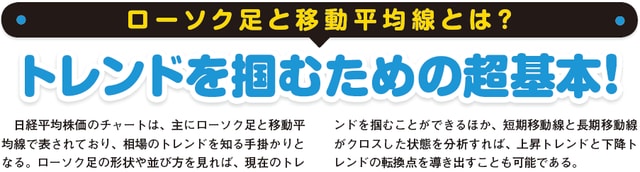 日経平均株価のチャートは「ローソク足」で構成されています。これは株取引やFXでも使われている代表的なチャートで、始値・高値・安値・終値の4本値をローソクのような形で表しています。