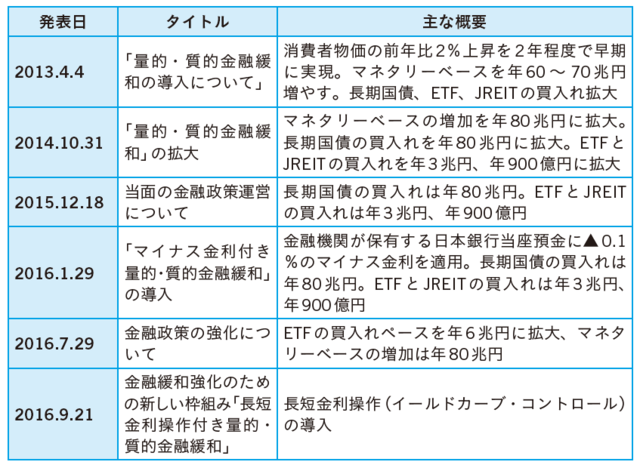 いわゆる異次元金融緩和「黒田バズーカ」です。翌年10月には2発目となる追加緩和策が発表され、さらに2016年1月からはマイナス金利を導入して市場を驚かせ、9月には世界でも類を見ない「イールドカーブ・コントロール」を導入しています。