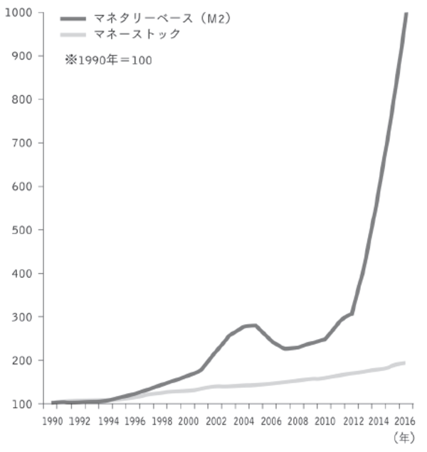 ※1 マネタリーベース:現金の通貨(紙幣とコイン)、および民間の金融機関が日本銀行に預けた資金(日銀当座預金)の合計のこと。中央銀行である日銀がコントロールできるとされる。