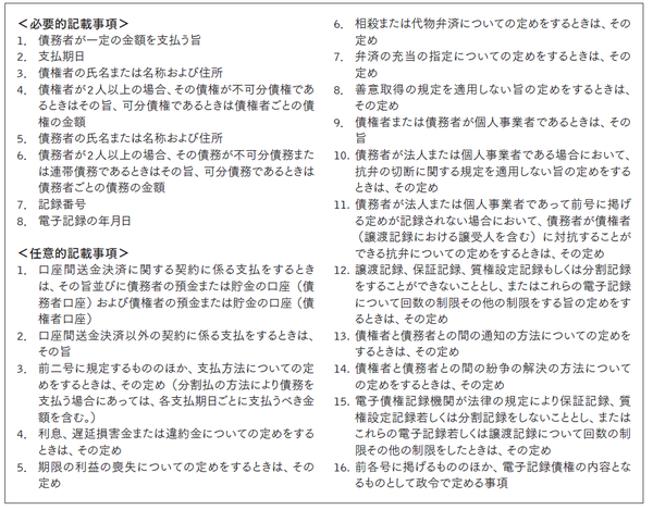 [図表3]電子記録債権法の必要的記載事項と任意的記載事項