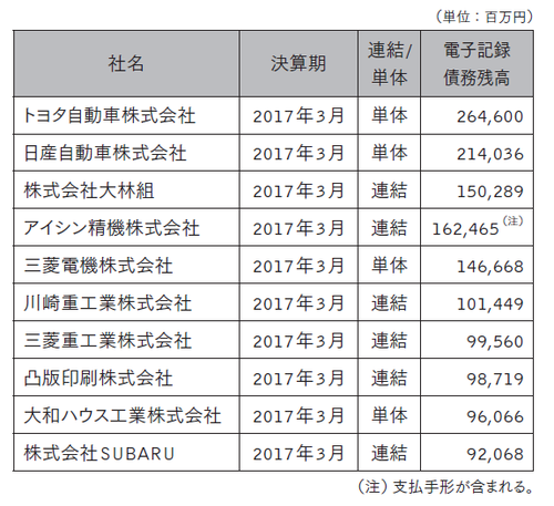 [図表2]電子記録債権を使って支払を行っている企業の例