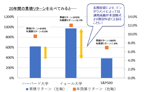両校とも、資産規模では一二を争う代表するスーパー・エンダウメントですが、パフォーマンスでかなりの差がついてきています。これには次のような背景があります。