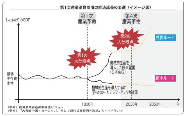 第4次産業革命は農業中心から工業中心に世界経済が大きく分岐した第1次産業革命時と同じくらい大きな変革をもたらすという。