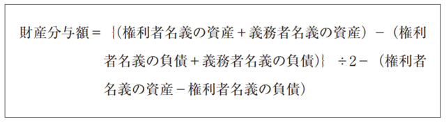 財産の分与を受ける配偶者を権利者、財産を分与する配偶者を義務者とすると、算定式は、下記のとおりとなる。
