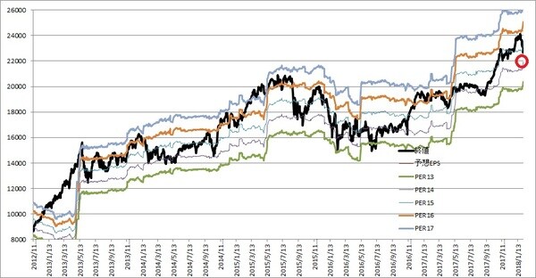 NYダウが史上最大の下げ幅となり、二日連続で大暴落です。日経平均予想PERは急落して14.47倍と急落です。逆に、日経平均予想EPSはホンダ効果か大幅高で史上最高値更新です。今日も急落しそうですが、予想PER14倍水準21,945.3円が下値めどとなりそうです。