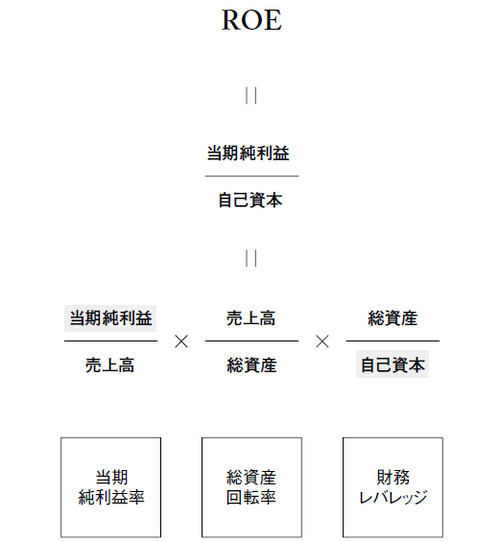 だが、ROEとはそれだけのものではない。実はROEは、当期純利益率(当期純利益÷売上高)と、総資産回転率(売上高÷総資産)、それに財務レバレッジ(総資産÷自己資本)の3つの指標を掛け合わせたものでもあるのだ。