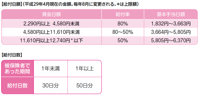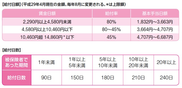 [図表1]60歳以上65歳未満の人の基本手当日額と給付日数