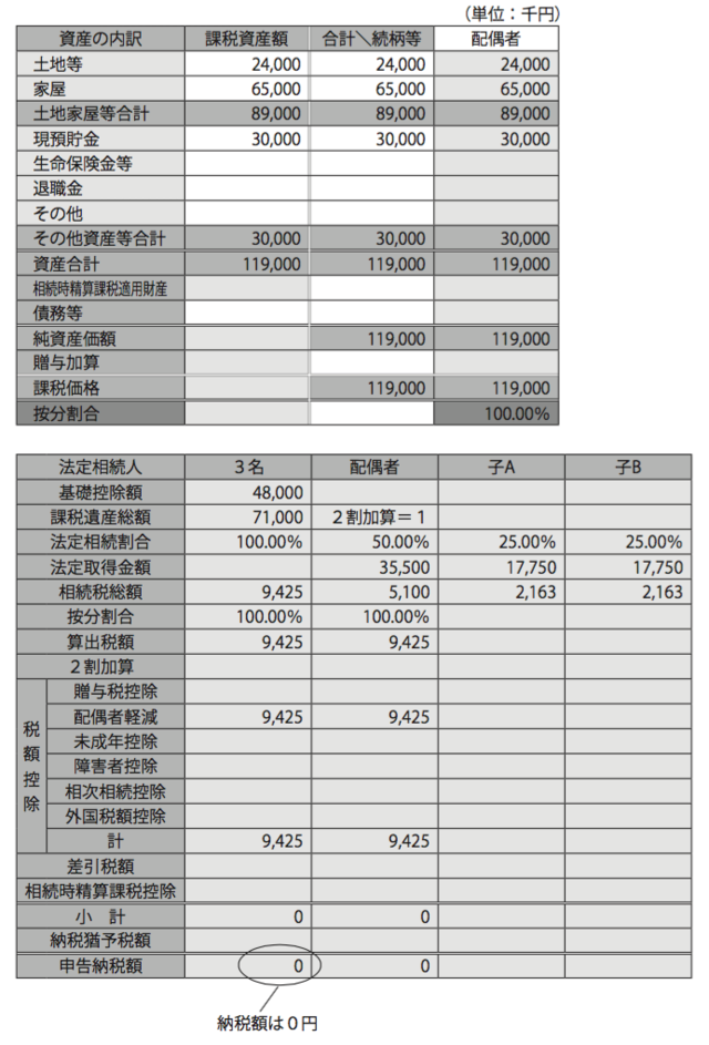 そして、相続税については下記の図表1に示したような形になります。母親については、配偶者控除(法定相続分または1億6000万円の高い方まで控除できる)を使って納税額は0円となりました。
