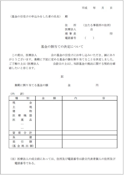 [図表1]書式例「基金の割り当ての決定について」
