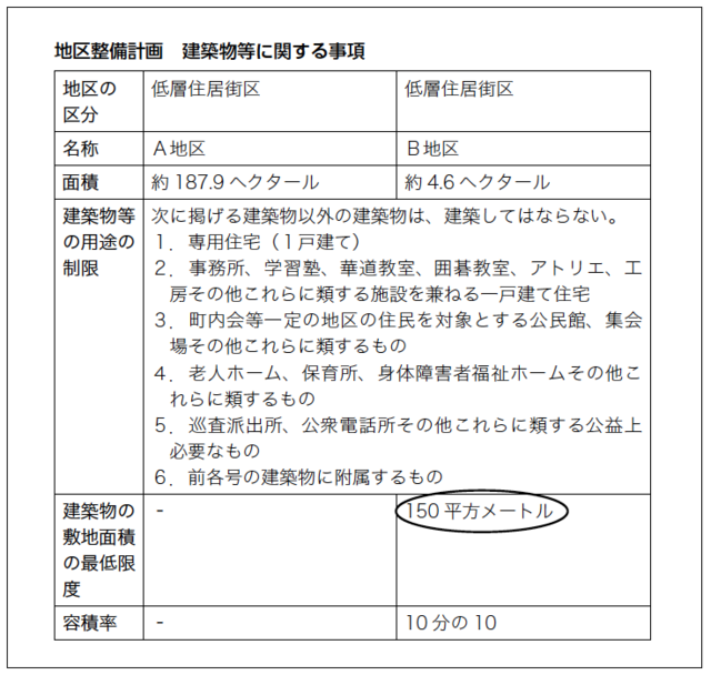 本件土地について、市町村役場の都市計画課等で調査を行ったところ対象土地が存する地区には、地区計画が定められており、建築物の最低敷地面積を150㎡とする規制があることが分かりました。したがって、280㎡の本件土地を2区分した場合には、両土地に建物を建築することはできないこととなりますので、この規制に配慮して遺産分割をせざるを得ません。