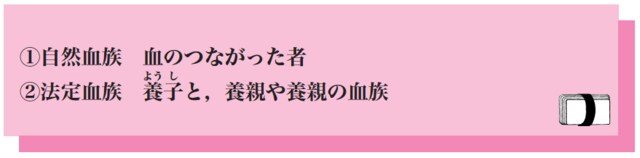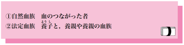上の図表2の②において、養子と養親の血族は法定血族なのです。養子と養親の兄などがこれにあたります。養子縁組によって養子と、養親・養親の血族間に血族関係が発生します(727条)。そして離縁によって終了します(729条)。
