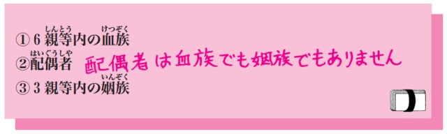 親族の範囲民法は725条で親族の範囲を、下記のように定めました。