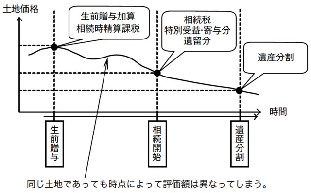 通常の相続財産は、原則「相続開始時」が評価時点に