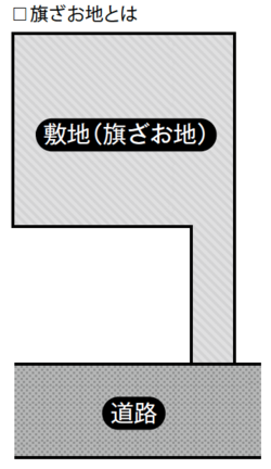 斜面地以外にも、一見すると土地活用を図りにくそうな土地があります。その一つが、旗ざお状の土地です。旗の部分が敷地に、さおの部分は道路との間を結ぶ通路に当たります。道路から少し奥まった場所にある土地です。